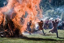 Thangbi Mani festival is one of the most popular festivals held in Chhoekhor Gewog in Bumthang. The highlight of the festival is the fire blessing (Mewang) ceremony, performed in an open ground. The lay monks perform purification rituals while people jump over flames to purify themselves. Several mask dances are also performed. It is believed that the festival would bring peace and prosperity and ensure better harvest for the entire community. Thangbi Mani is a unique festival which displays the rich tradition and celebrates the cultural heritage of this ancient monasteryThangbi Lhakang, founded in 1470 by the Shamar Rinpoche, Chokki Drakpa. The iron curtain at the entrance is said to have been cast by the saint himself. Thangbi Lhakhang is located beyond the Kurje Lhakhang.